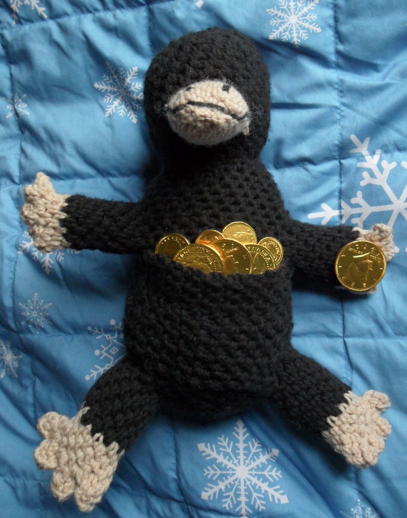 Now onto the presents! My mothers present was honestly my favorite to make.. For those of you who are into ‘Harry Potter‘ and have watched the ‘Fantastic Beasts‘ series, you’ll love this one! For those of you who haven’t seen the movies or don’t like them, let me just explain this present to you as a magical creature who loves to steal coins and other shiny things to stuff in their pouch. 😉