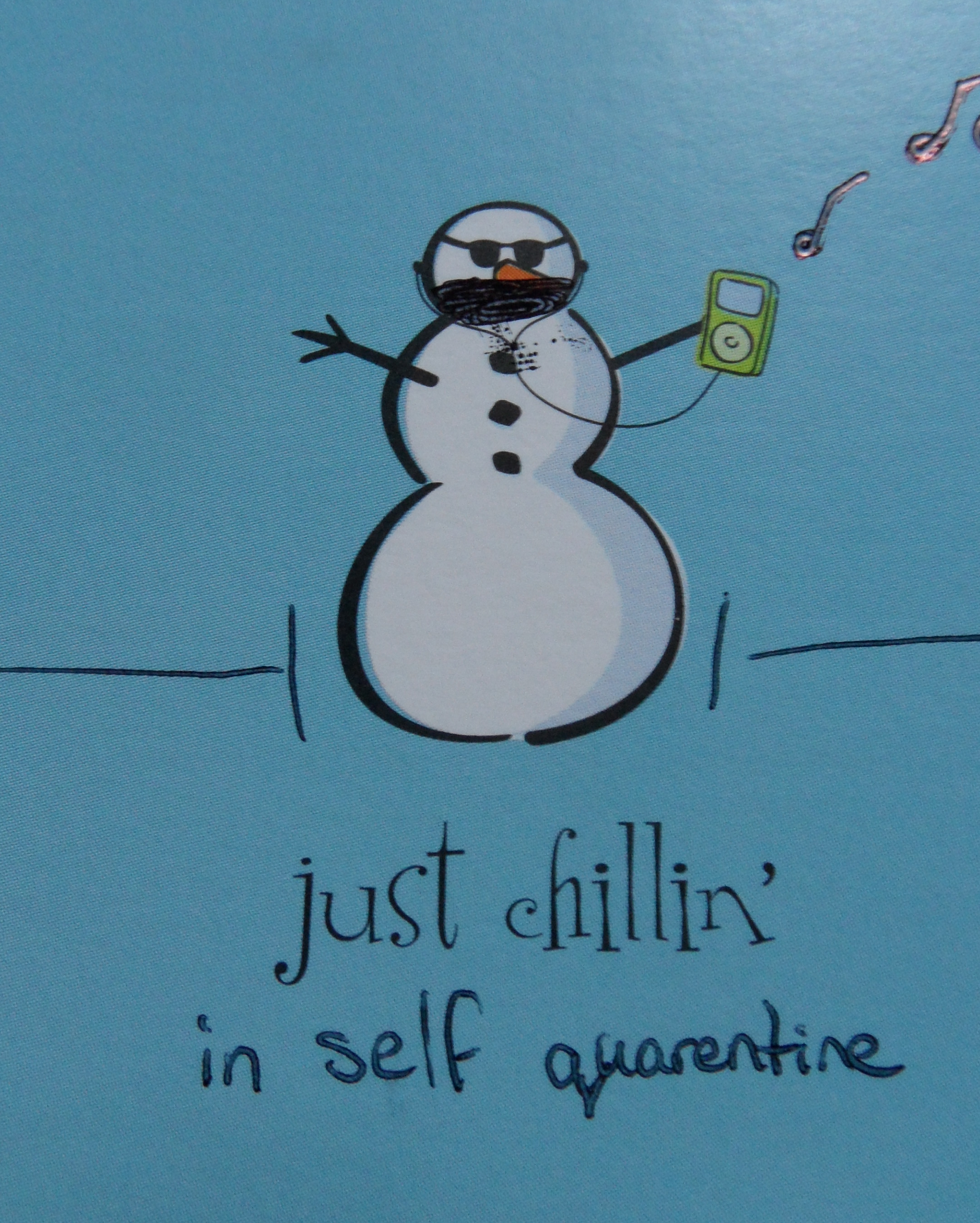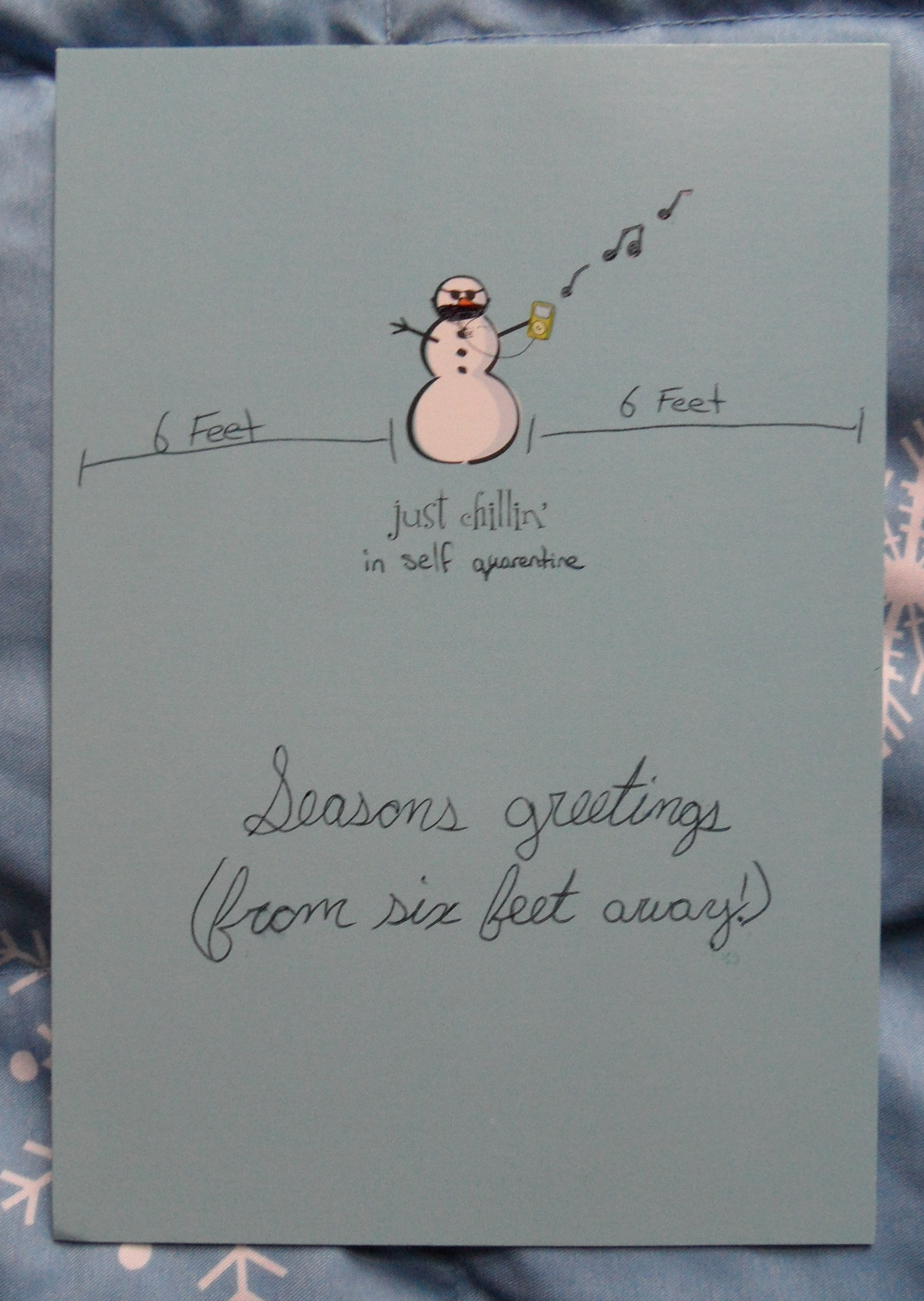 In addition to gifts, my Christmas cards this year completely fit this years theme of 2020! I had cards with just regular snowmen on them, and the card was honestly a little dull. So I added some musical notes, a face mask, six feet indicators, and wala! A card fit for 2020!