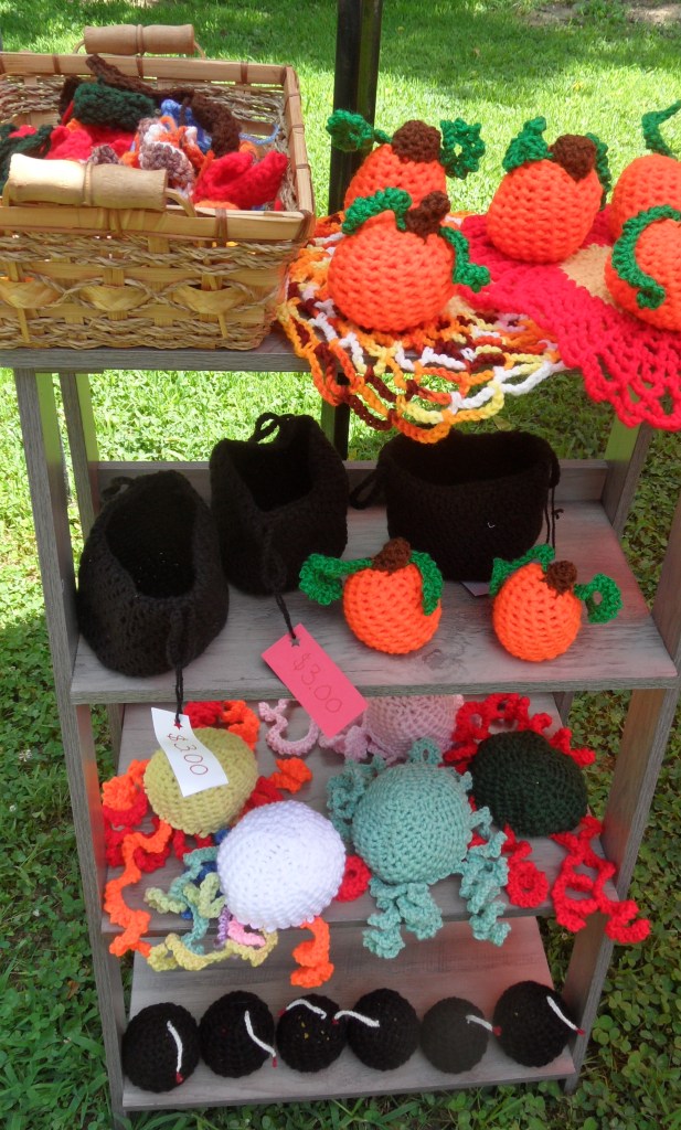 These were things I made when I was playing around with some yarn. I only have these five and I don’t plan on making any more than what I have here because of time and effort (and because I honestly don’t remember how I made them in the first place). They didn’t sell well the first year, but I didn’t have the best set up or location to advertise them well at. We will see how they do this year.