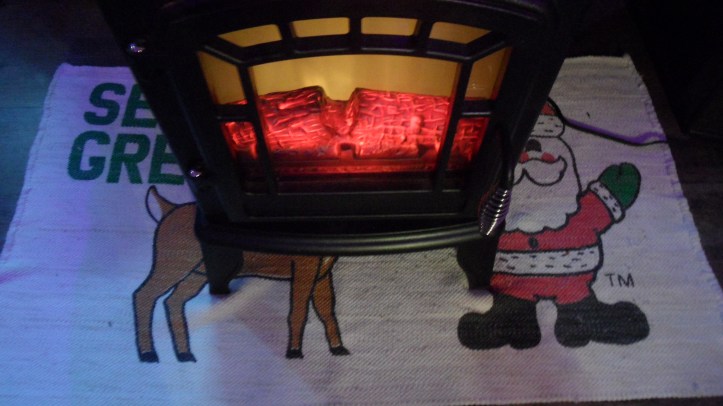 Of course, my Christmas decor wouldn’t be complete without a fake fireplace and some music on the record player!