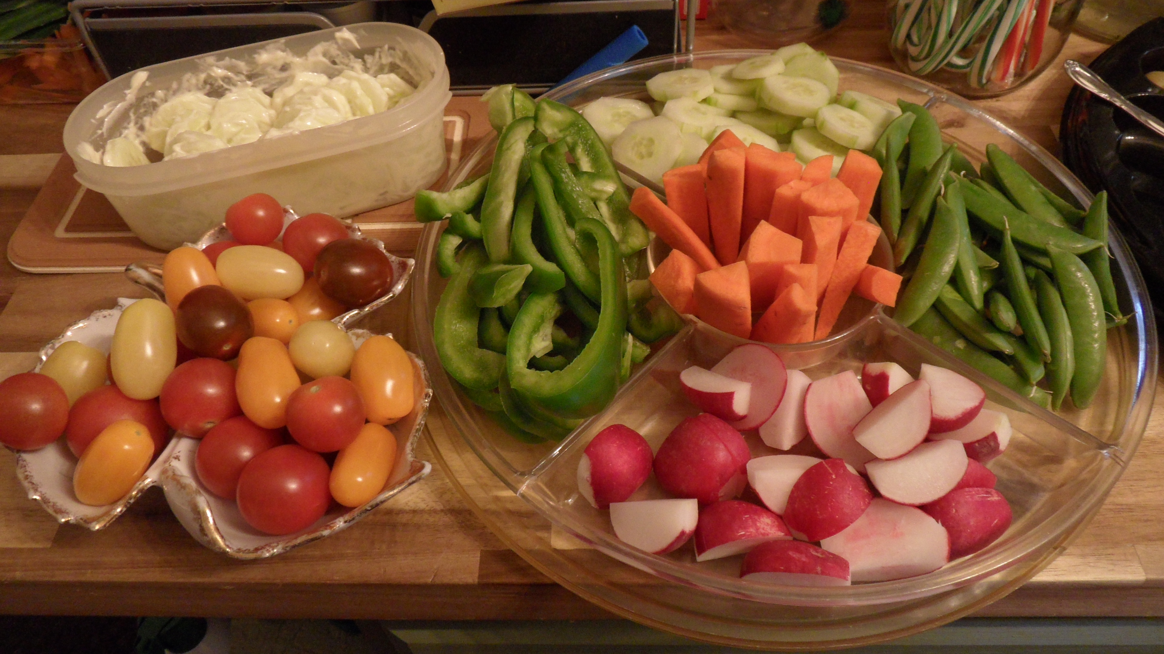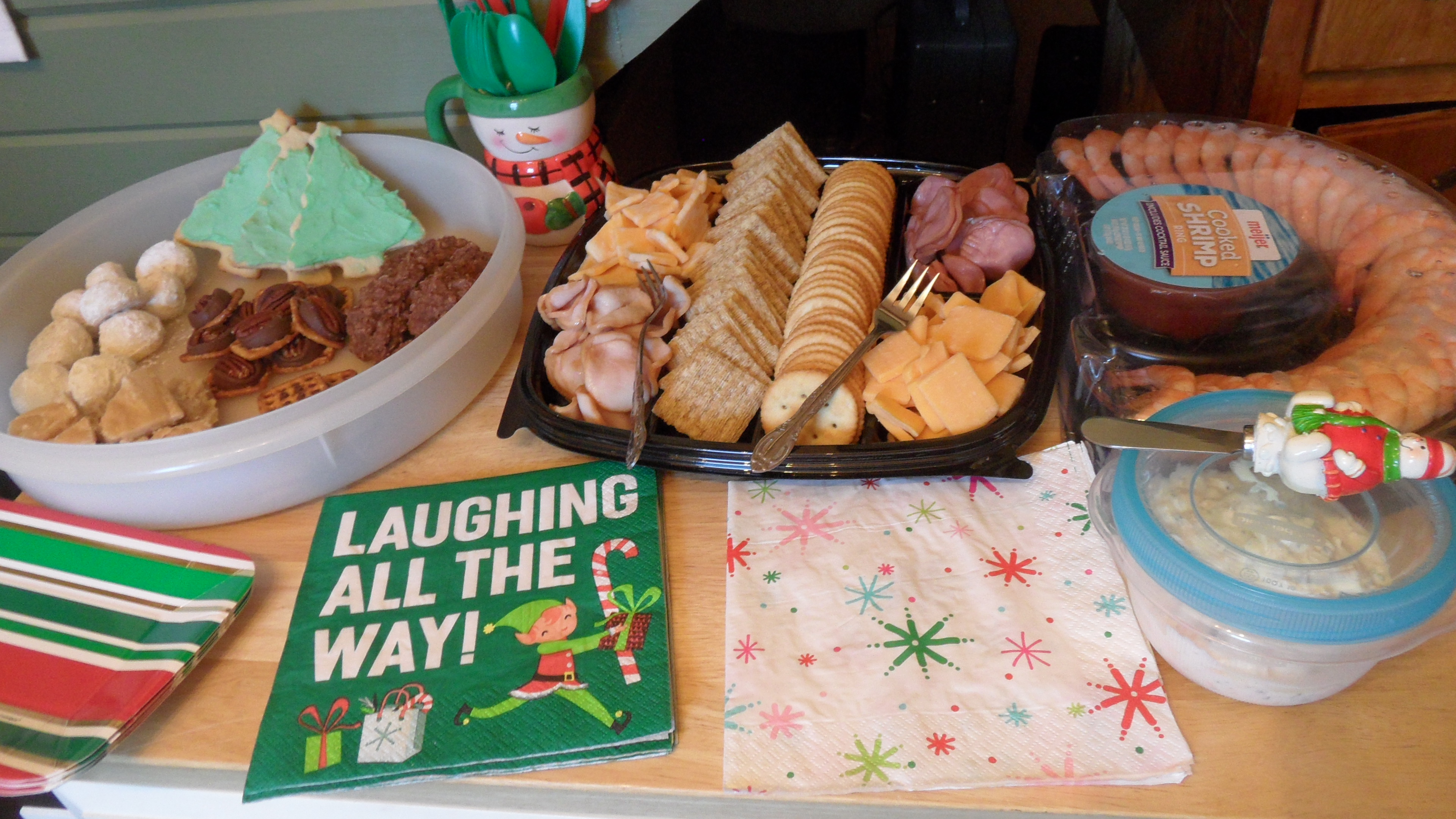 After opening presents, my mother and I got to work getting food ready for our snacking lunch. I spent 2-3 hours making German Potato Salad, while my mother spent a few hours getting snacks around. It turned out to be a beautiful spread and very yummy too!