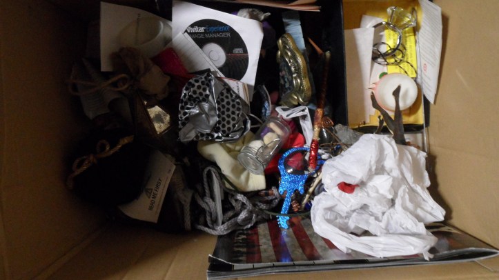 In the next few boxes, I had found; a box of old books (labeled ‘books’ in my own handwriting), a box of toys (labeled ‘books and crafts’), and a box of toys and some of my old drawings I used to do (labeled ‘craft room’). I can’t remember how many boxes I had gone through, but by the end of the morning I had finally found one of my capes and I had three boxes of stuff that could go to the flea market to be sold.