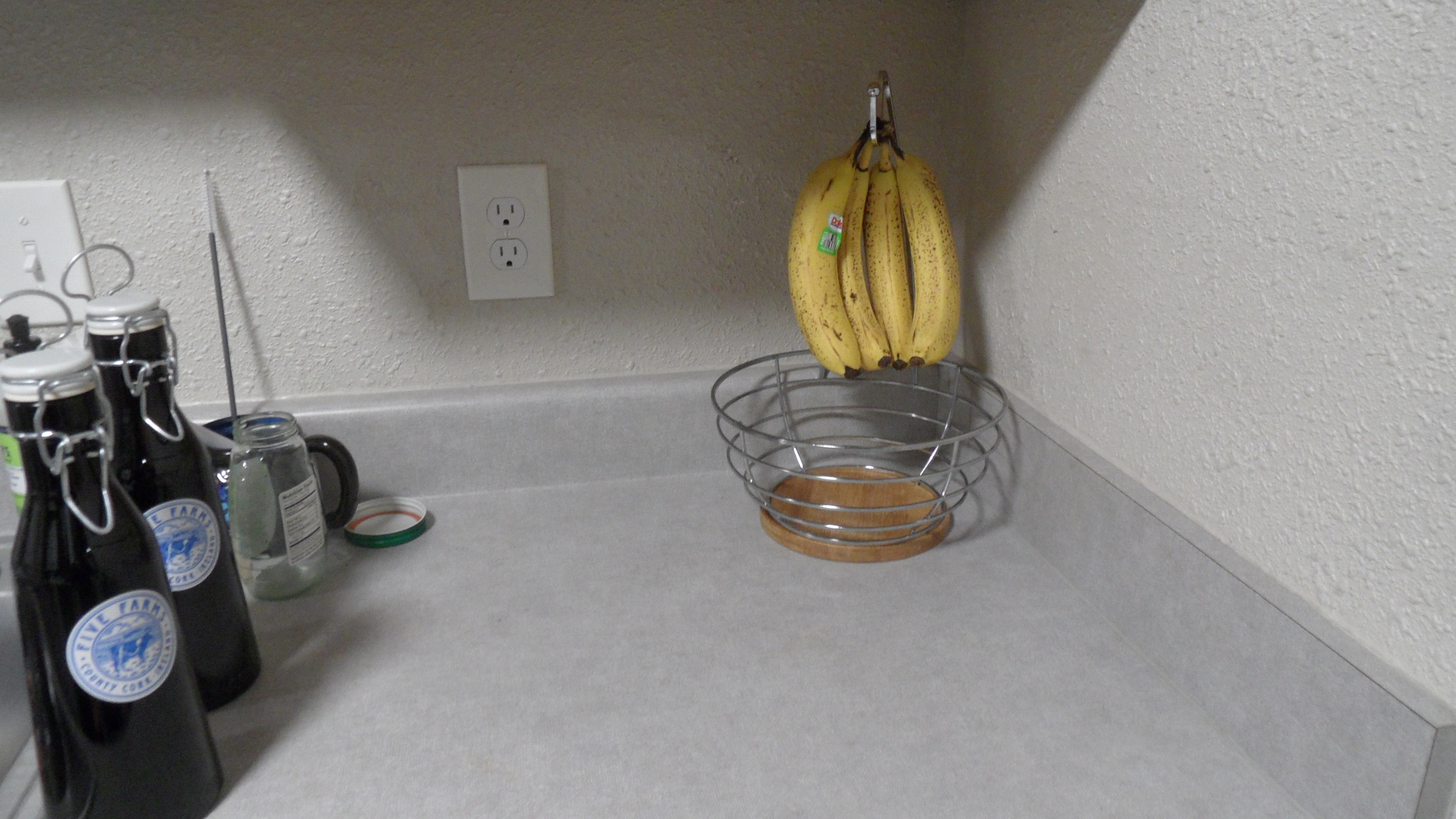 After cleaning up the wall, I decided to get to work on the rest of the kitchen.. One of the shelves we use as our ‘cupboard’ was getting kind of messy, especially with the countless boxes of tea all over. So I decided to dedicate a corner of the kitchen counter to a tea/hot cocoa/coffee corner. It looks much better than the empty counter we had before, and it gives us a proper place for our tea (although it’s not yet cool enough to be drinking hot tea). Plus, it clears up room on our shelves for all of the spices that have been stacking up!