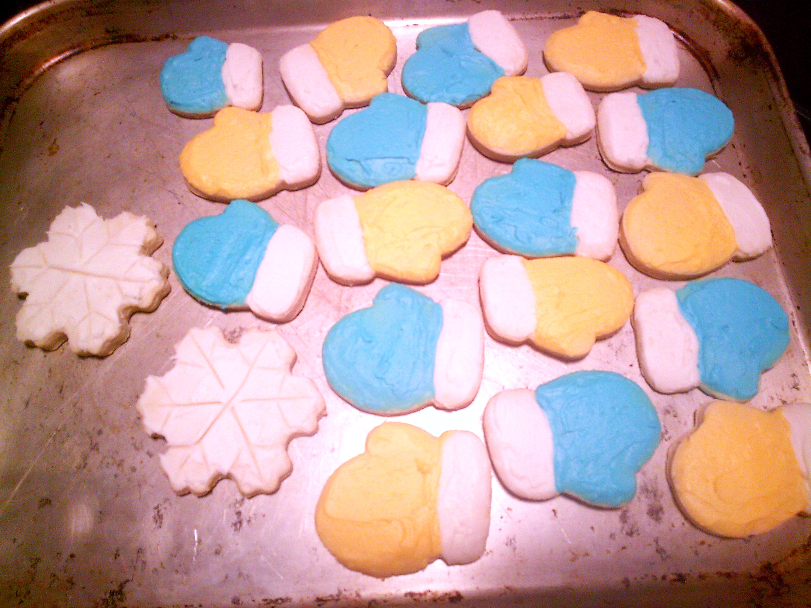 I think that the cookies turned out so cute! I love the colors that I used, and I think that everything really pops when you see them all together like this. I went with basic stars, snowflakes, and mittens this year. Nothing ‘too’ complicated to frost, and I like these better than the traditional Christmas trees and Snowmen we do every year.