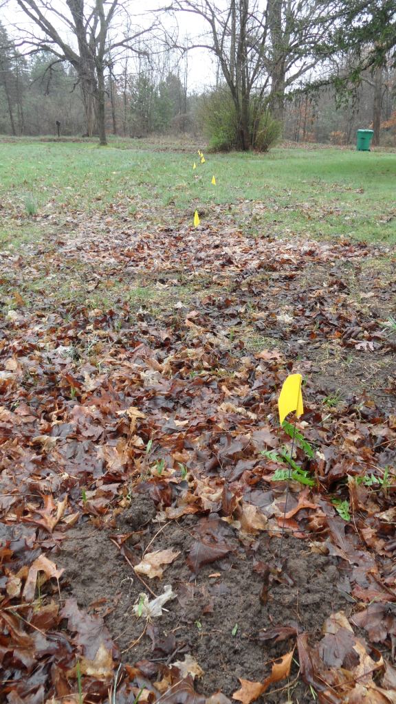 We had so many different varieties that we wanted to plant, so I made sure to make a detailed list of what got planted where, and then I marked each one with a yellow flag so that I knew where it was planted.