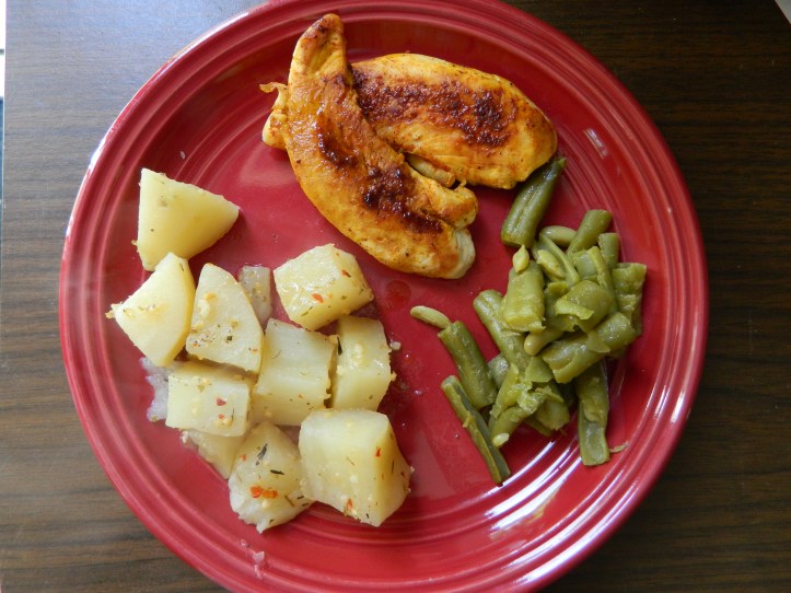 And speaking of chicken… 😉 Hubby and I are trying to get back into eating healthier, which means we have been cooking up some good food in the kitchen this week! Friday’s dinner menu was green beans, herbed potatoes, and stovetop fried chicken strips. ❤