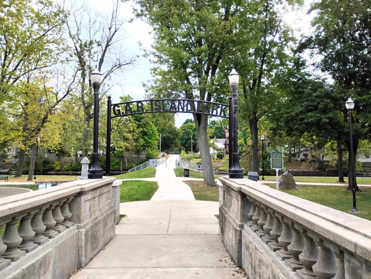 There was a beautiful stone bridge we found going across the river to the island. We were thrilled to find this little hidden gem of a park!