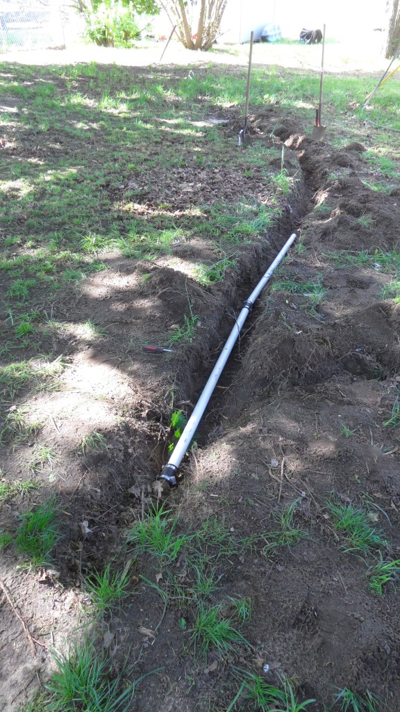 After the ground thawed, we went to work on the yard! Limbs were cut off dying trees, the yard was cleaned up, garden beds were added, a compost bin was constructed, and all of our bushes went into the ground!